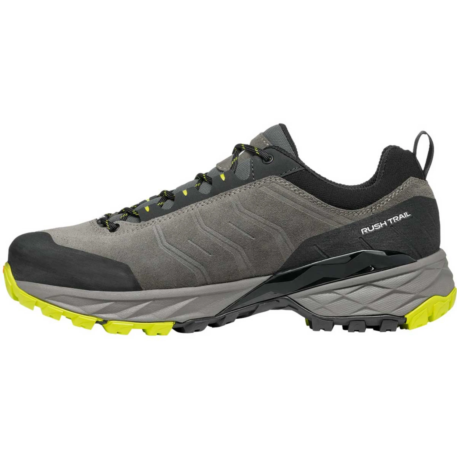 <p>The Scarpa Rush Trail GTX for men is the perfect companion for fast after-work hikes, extended walks or short ascents to the wall.</p><p>With its rich suede upper construction, TPU film reinforcements at the front and back and a raised rubber toe cap at the front, you’ll be well equipped for the forest and meadow trails of your region. In addition, the breathable and sustainable Gore-Tex® Bluesign lining offers protection against moisture penetration.</p><p>In terms of walking performance, the Rush Trail GTX impresses with a cushioning EVA midsole and a TPU reinforcement at the heel for anti-torsion control and thus even more stability in the shoe. The Presa® outsole gives you a good grip on the trail.</p><p>All in all, with this multifunctional shoe, you have a super robust, waterproof and stable companion for your adventures below the tree line.</p>